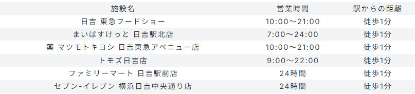 | | 新横浜駅 | 菊名駅 | 日吉駅 |